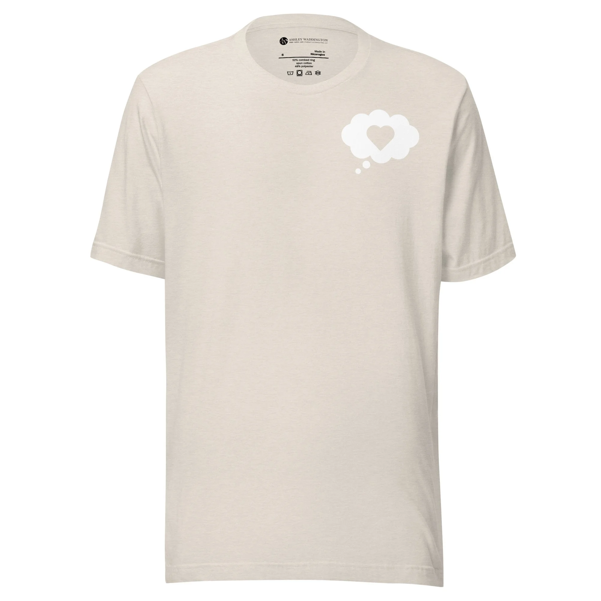 Your new go-to reminder. This first tee in the Heartfelt Collection keeps things minimal with the heart bubble logo front and center. It’s a way to carry the collection’s message into everyday life—gentle, simple, impactful.